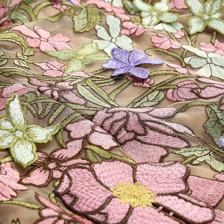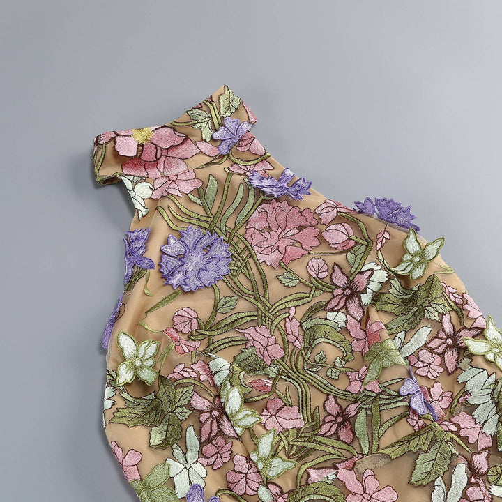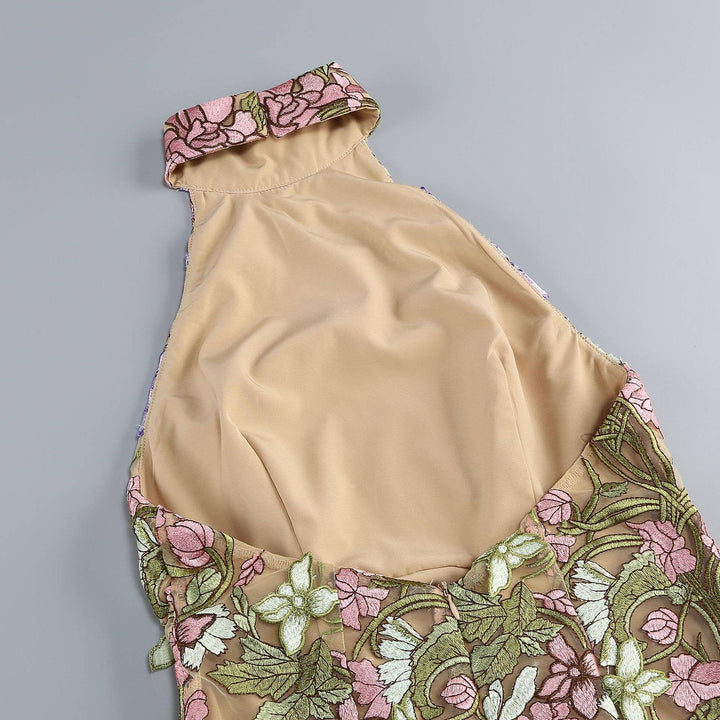 This sophisticated sleeveless mini dress features exquisite floral embroidery on a delicate sheer fabric, blending elegance with allure. The intricately crafted embroidery adds texture and refinement, creating a visually stunning design. The sheer fabric subtly highlights the silhouette, offering a graceful and feminine touch. With a fitted waist and a flattering cut, this dress enhances natural curves while ensuring comfort. Perfect for evening parties, dinner events, and special occasions, it pairs beautifully with statement heels and minimalist accessories for a refined and captivating look. A must-have for those seeking charm and sophistication in their wardrobe.