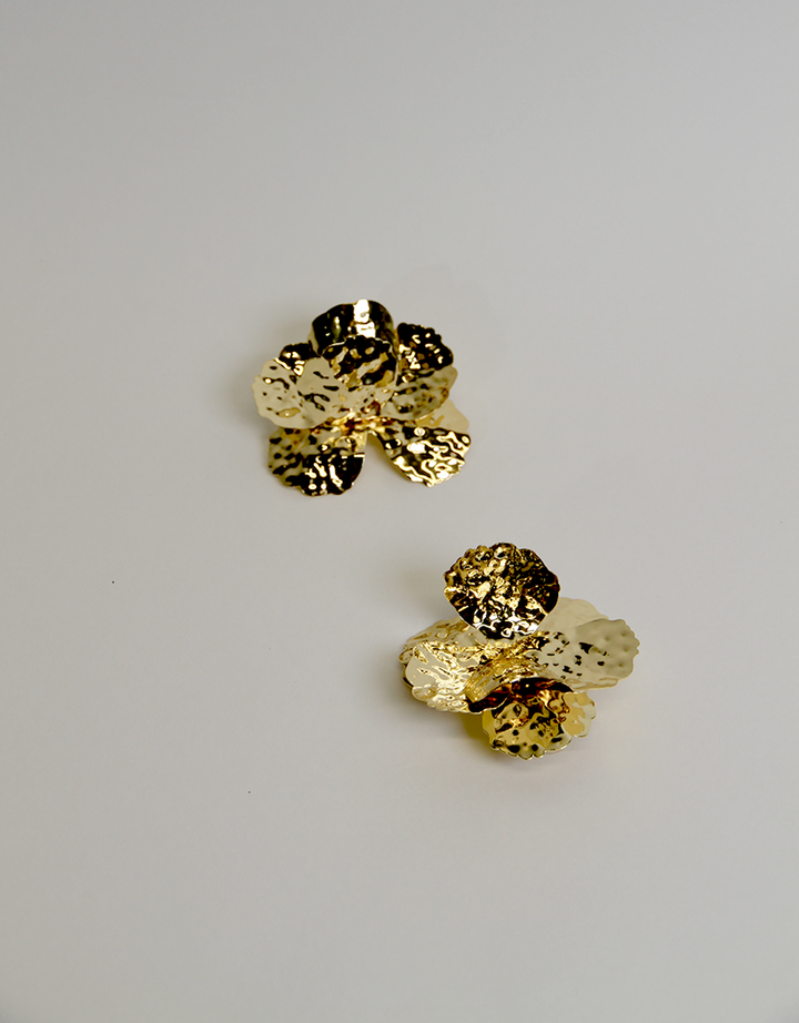 Beautifully stacked gold-plated petals form a stunning flower that dangles from your ears, reflecting light so beautifully, complementing your look for the night.