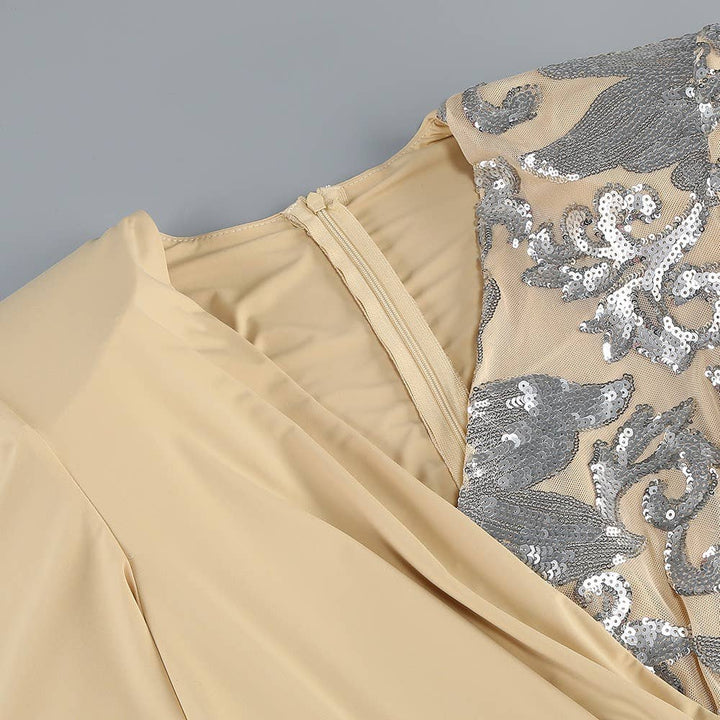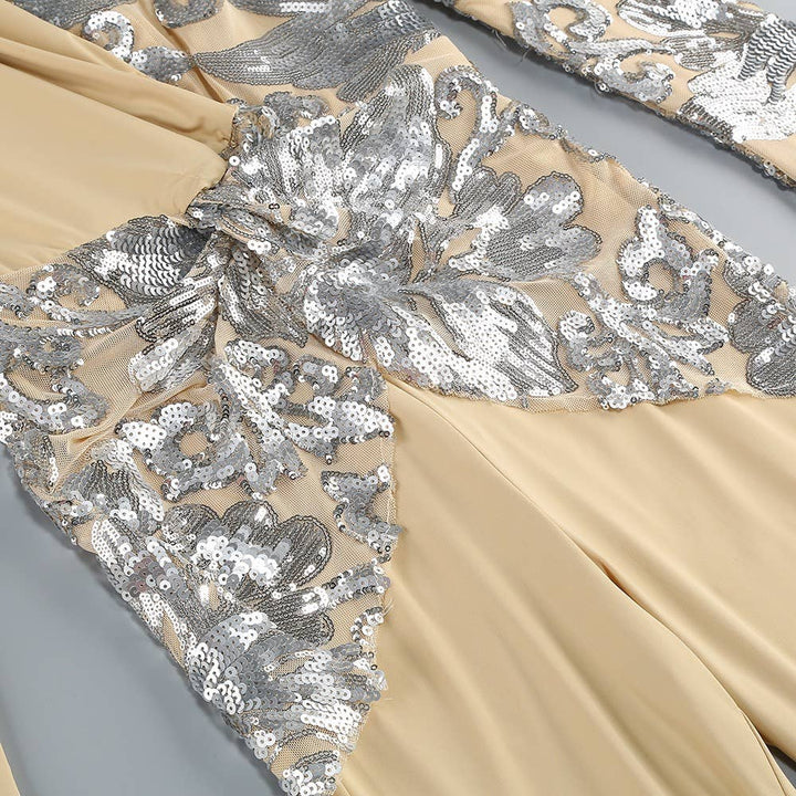 Marian Style - Deep V Sequin Flared Sleeve Slim Party Jumpsuit