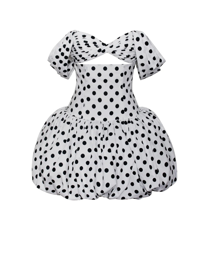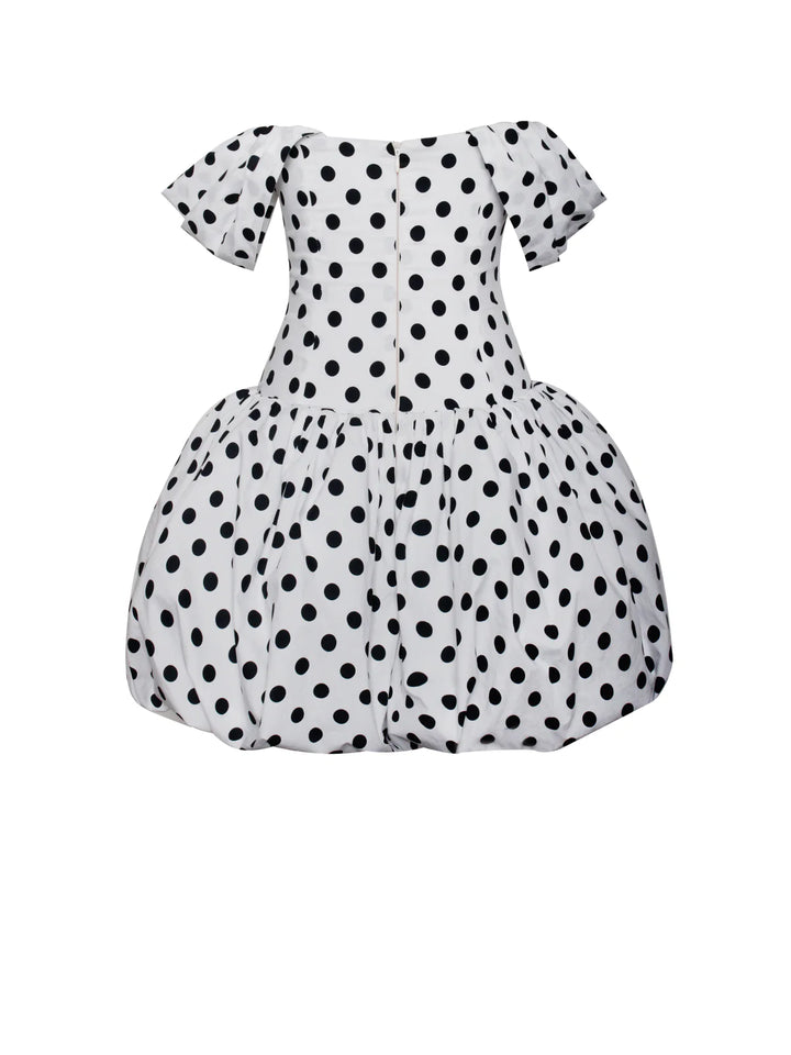 Elevate your wardrobe with this Polka Dots Bubble Mini Dress, featuring a playful bubble hem that adds subtle volume and movement. The classic polka dot pattern exudes timeless charm, while the mini length offers a modern, chic silhouette. Crafted for comfort and style, this dress effortlessly blends sophistication with a fun, flirty edge—perfect for daytime events or elegant evenings.