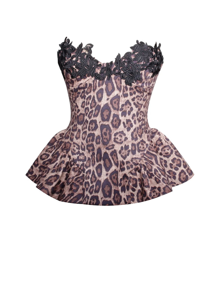 Qiara Cheetah Print Peplum Top with Lace Trim
